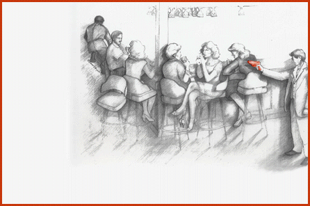 people in full view of a bar half full of patrons has to be crazy? Almost all